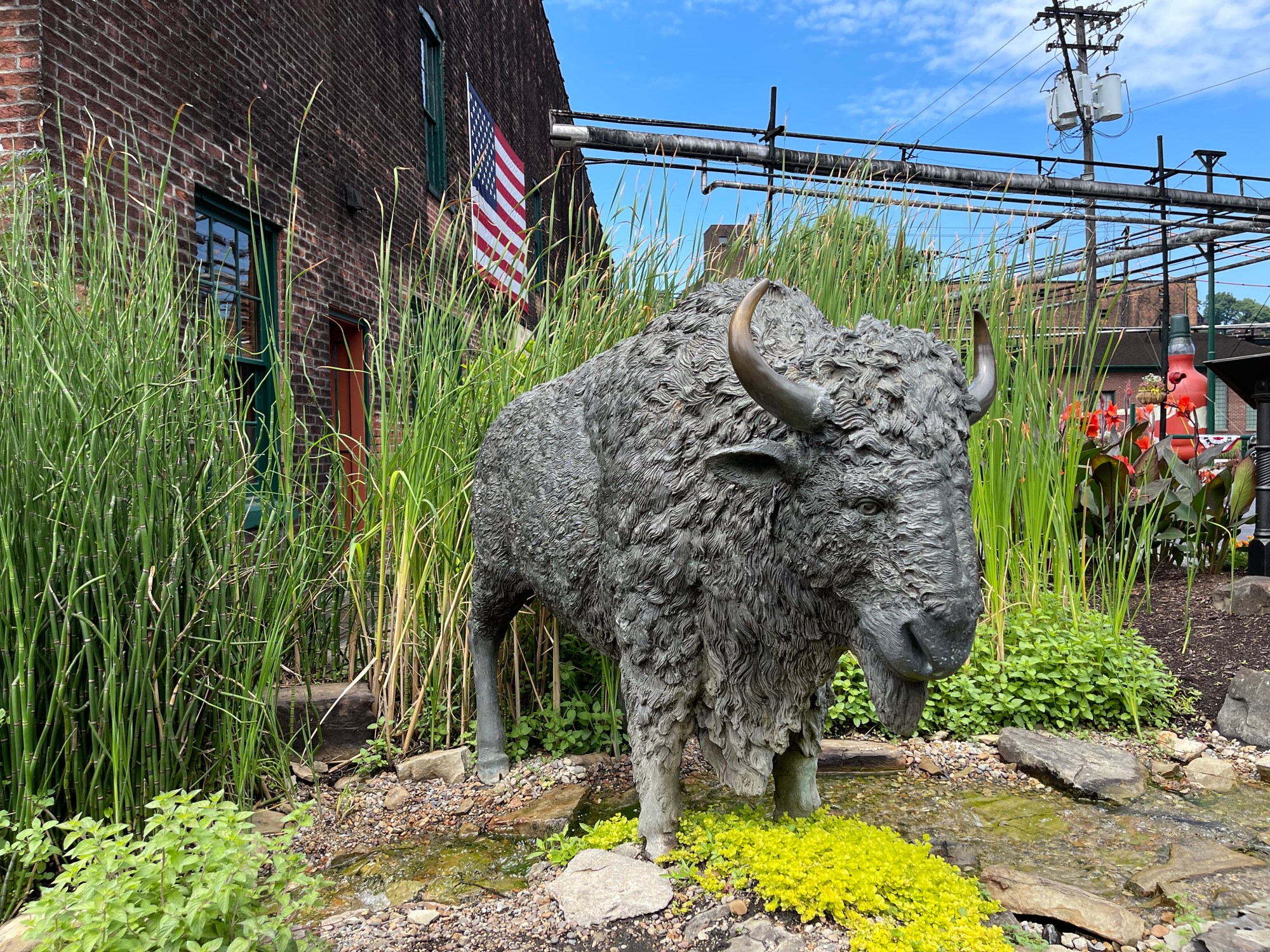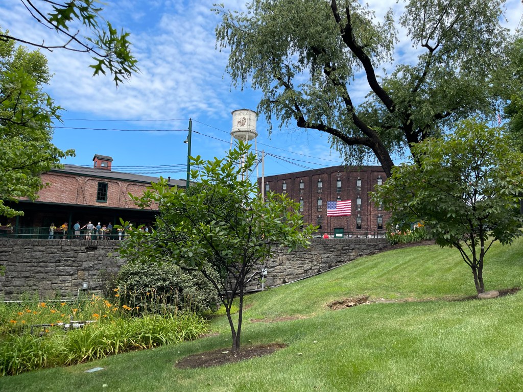We left the scenic rural 2 lanes from Woodford for an 11 mile route towards Frankfort KY, bringing us back onto typically congested and dated commercial thourough fares dotted w car lots and fast food. Taking it all in despite, we passed a behemoth of an abandoned looking factory, a stoic, blackened red brick monstrosity that reeked of historic sweat & hardship. I could hear the echoes of Industrial Age sounds, the screeching and clanking of metal, whistles & steam. Old Kentucky ghosts of hard labor were evident. I sighed aloud “oh dear, look at that horrid old factory, what bones”. Then, following directions husband turned the corner to our destination- to our surprise, right there- towering above everything was an old fashioned watertower standing proudly as old water towers do, marking its territory “ BUFFALO TRACE” we had arrived…oh my.